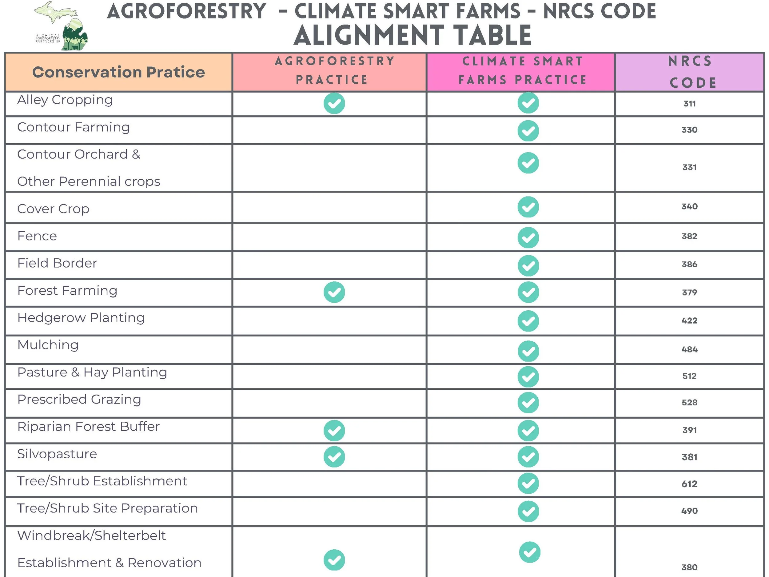 AGROFORESTRY - CLIMATE SMART FARMS - NRCS CODE - Alignment Table